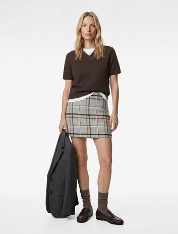 Flanel Kumaş A Kesim Mini Kareli Kışlık Etek
