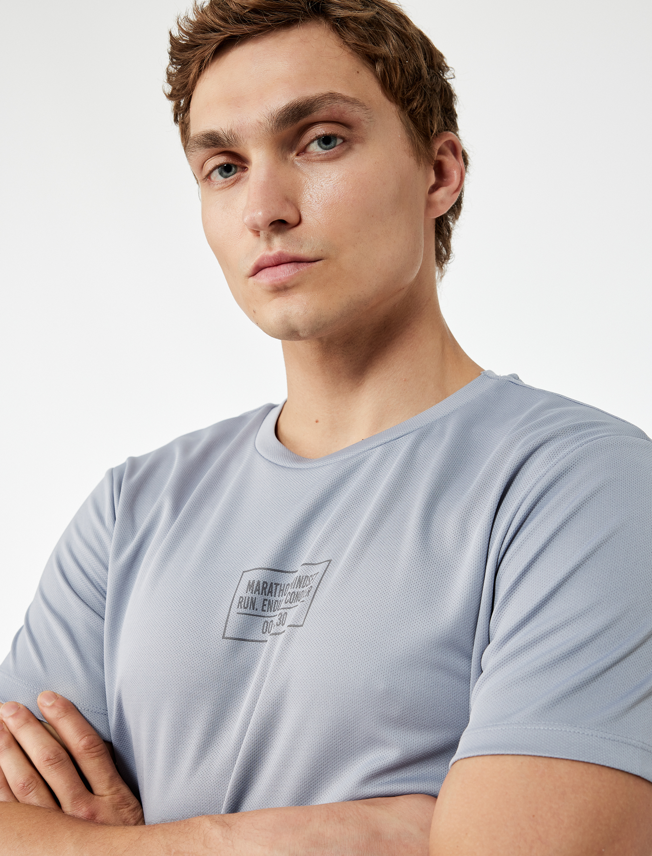 Kısa Kollu Bisiklet Yaka Baskılı Spor Tişört