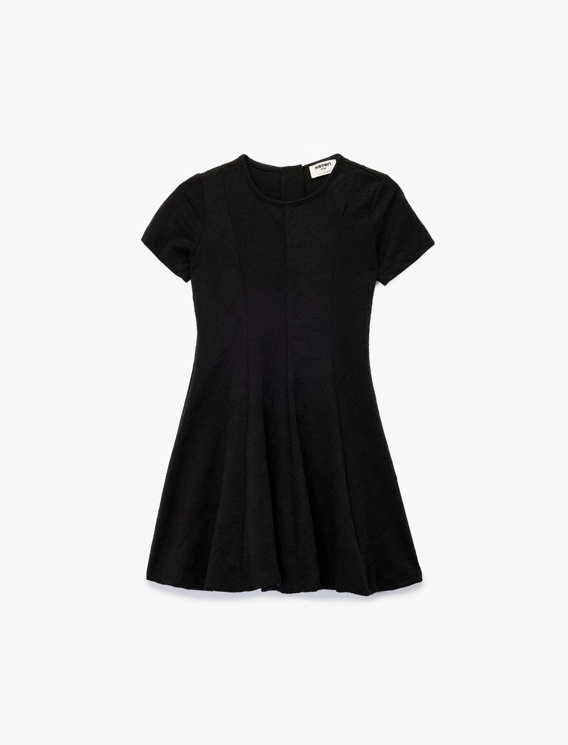 Kız Çocuk Kısa Kollu Bisiklet Yaka Pileli Basic Elbise