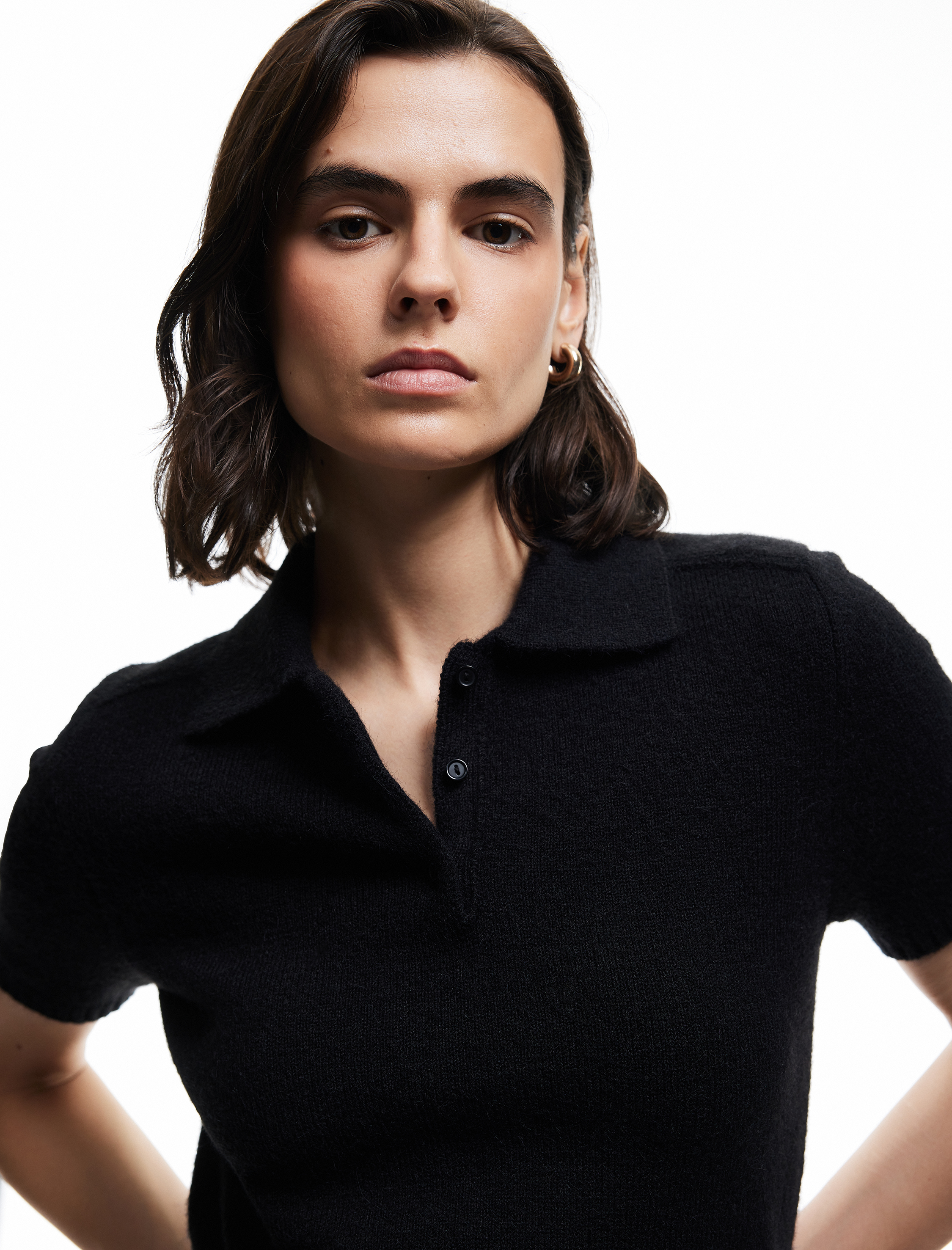 Kısa Kollu Düğmeli Polo Yaka Triko Kazak
