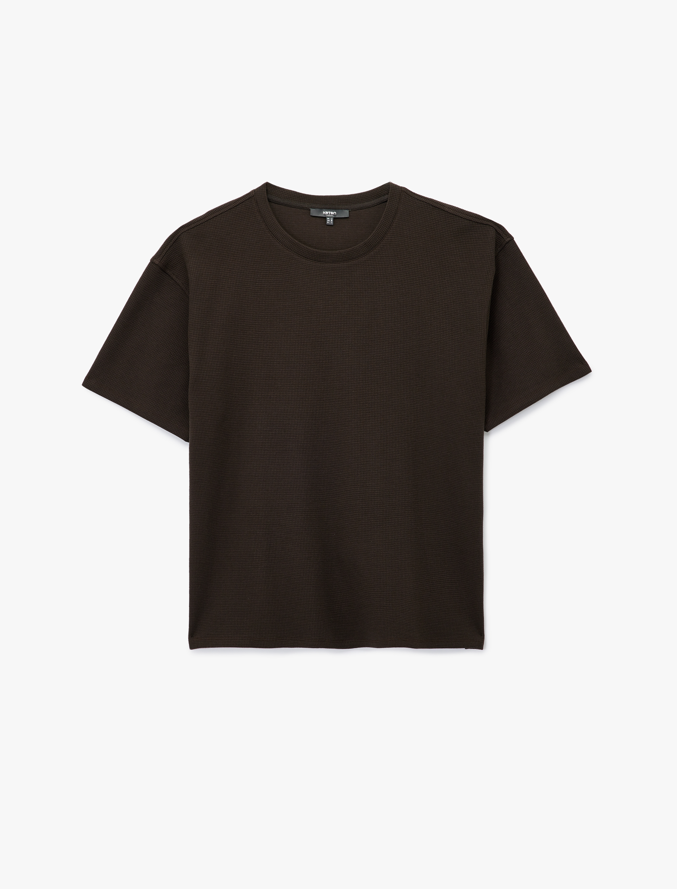 Kısa Kollu Waffle Dokulu Oversize Pamuklu Bisiklet Yaka Basic Tişört