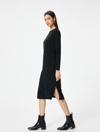 Uzun Kollu Elbise Dokulu Bisiklet Yaka Sepete Ekle