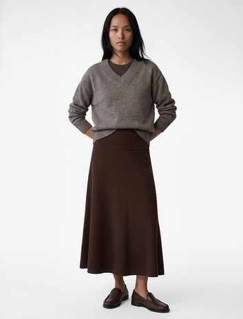 Kış gardırobuna modern bir yorum katmak isteyenler için gri triko etek oldukça kullanışlı ve çok yönlü bir seçenek. Nötr tonları sayesinde farklı renklerle kolayca eşleşen gri triko etek modelleri, yumuşak ve esnek dokusuyla gün boyu konfor sağlıyor. Minimal ve zamansız görünümünü, pastel tonlarda kazaklarla kombinleyerek kışın dingin havasını stilinize yansıtabilirsiniz. Gri triko etek kombinleri arasında en çok tercih edilenlerden biri, oversize beyaz gömlek ve gri etek ikilisi. Bu ikili, maskülen ve feminen öğeleri harmanlayarak güçlü bir moda duruşu yaratıyor. Sezonun öne çıkan kumaşlarından biri olan kaşe, etek modellerinde de iddiasını sürdürüyor. Gri kaşe etek modelleri özellikle monokrom kombinler oluşturmak isteyenler için oldukça ideal seçenek yaratıyor. Gri kaşe eteği yine aynı tonda bir kaban ve diz üstü çizmeyle birleştirerek sade ama etkileyici bir kış stili elde edebilirsiniz. Bu görünüme biraz daha canlılık katmak isterseniz, fuşya ya da bordo tonlarında bir atkı ya da çanta ile sofistike bir kontrast yaratabilirsiniz.