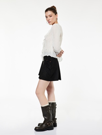 Metal Aksesuarlı A Kesim Süet Görünümlü Mini Etek Sepete Ekle