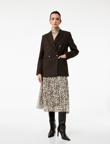 Standart Bel Leopar Desenli Pileli Midi Şifon Etek Sepete Ekle