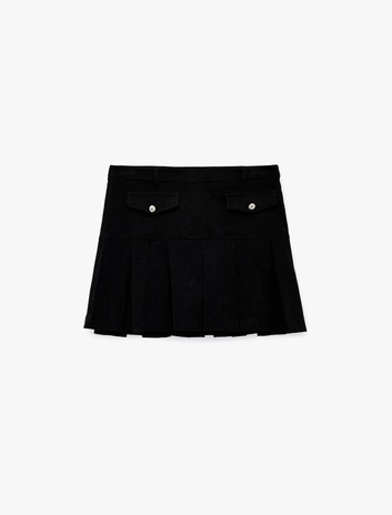 Cep Detaylı Düğmeli Kadife Mini Şort Etek