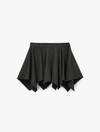 Viskon Karışımlı Volanlı Asimetrik Kesim Mini Etek