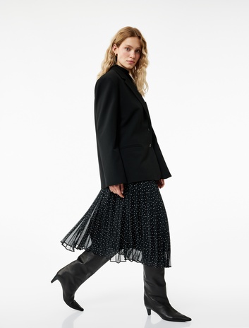 Puantiyeli İnce Piliseli Midi Boy Pileli Şifon Etek