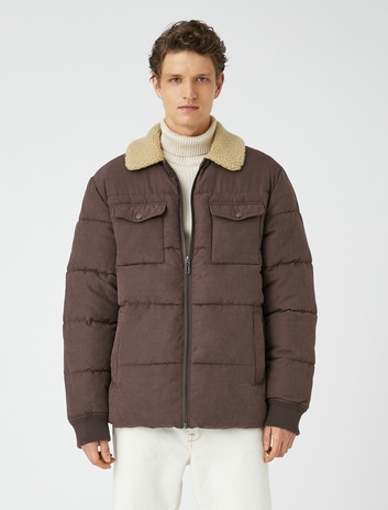 Şişme Mont Çift Cepli Fermuarlı Peluş Yaka Detaylı