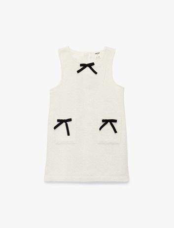 Kız Bebek Kolsuz Bisiklet Yaka A Kesim Fiyonklu Tüvit Elbise