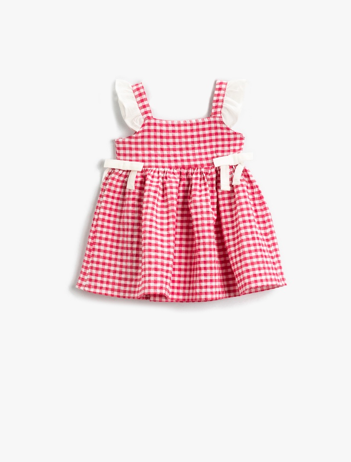 Elbise Fırfırlı Askılı Ekoseli Pamuklu Sepete Ekle