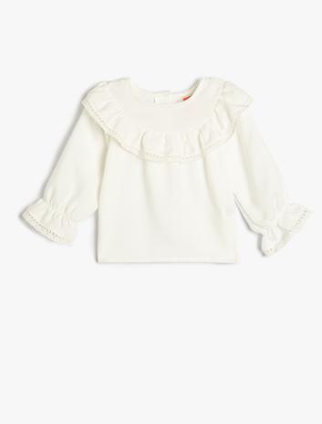 Uzun Kollu Gömlek Geniş Bebe Yaka Fırfır Detaylı Yumuşak Dokulu Sepete Ekle