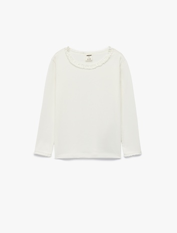 Fırfırlı Uzun Kollu Bisiklet Yaka Pamuklu Basic Tişört Sepete Ekle
