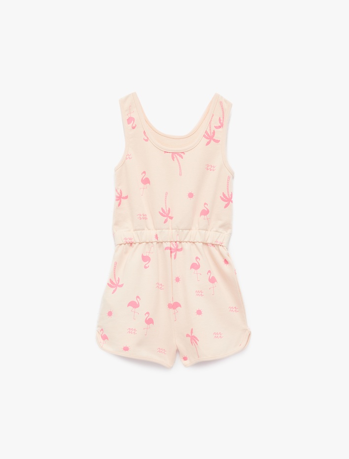 Pamuklu Bisiklet Yaka Flamingo Baskılı Askılı Tulum Sepete Ekle