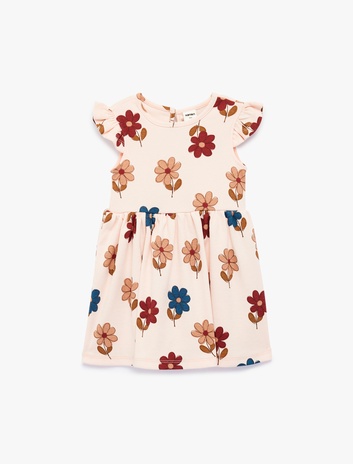 Bisiklet Yaka Pamuklu A Form Fırfır Detaylı Kolsuz Çiçek Desenli Elbise Sepete Ekle