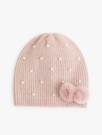 Kız Çocuk İnci Detaylı Ponponlu Bere