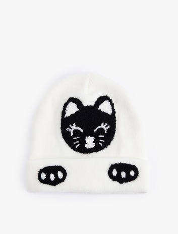 İşlemeli Kedi Desenli Triko Bere Sepete Ekle