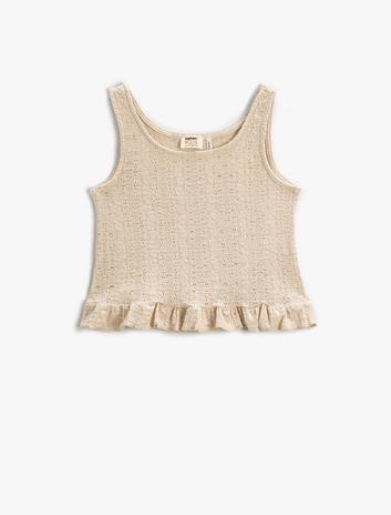 Crop İnce Triko Üst Kolsuz Fırfırlı Bisiklet Yaka Sepete Ekle