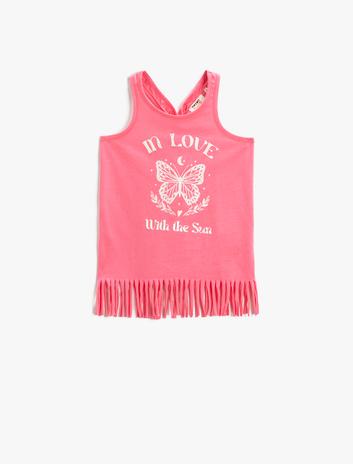 Kız Çocuk Atlet Püsküllü Yaz Temalı Baskılı Pamuklu