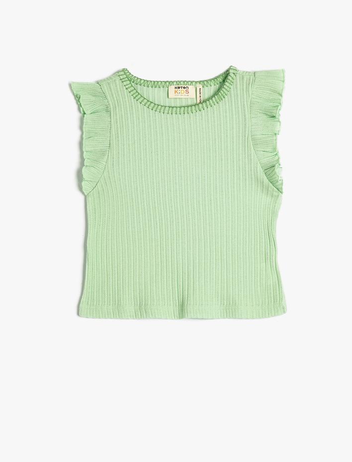Kız Çocuk Atlet Fırfırlı Yuvarlak Yaka Ribanalı Pamuklu