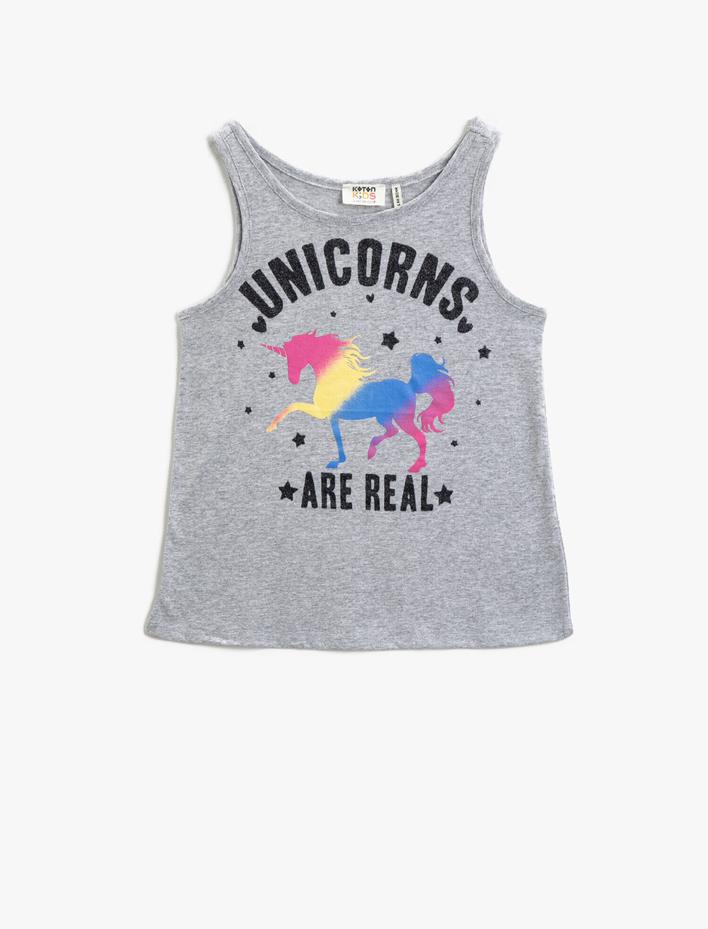 Kız Çocuk Sloganlı Atlet Unicorn Baskılı