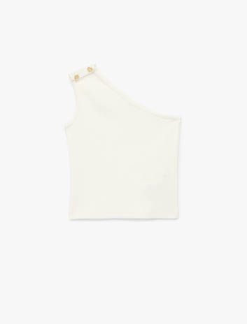Düğme Detaylı Kolsuz Pamuklu Tek Omuz Crop Atlet Sepete Ekle