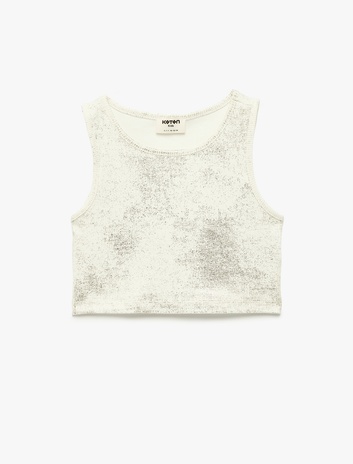Kız Çocuk Simli Kolsuz Bisiklet Yaka Pamuklu Crop Atlet