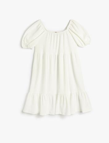 Kız Çocuk Elbise Midi Fırfırlı Rahat Kesim Kısa Kollu Kare Yaka