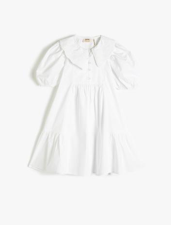 Kız Çocuk Elbise Maksi Geniş Bebe Yaka Lastikli Kısa Balon Kollu Pamuklu