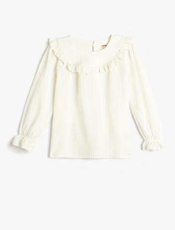 Kız Çocuk Bluz Uzun Kollu Bisiklet Yaka Fırfır Detaylı