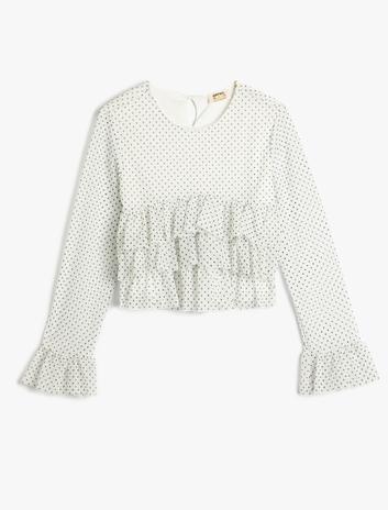 Kız Çocuk Fırfırlı Uzun Kollu Bluz Pamuklu