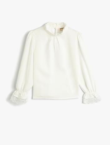 Kız Çocuk Bluz Uzun Kollu Dik Yaka Dantel Detaylı Viskon
