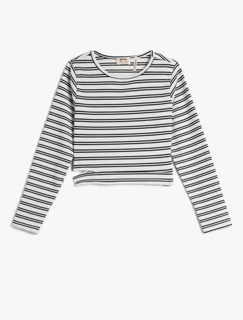 Kız Çocuk Bluz Uzun Kollu Bisiklet Yaka Pencere Detaylı Kaşkorse