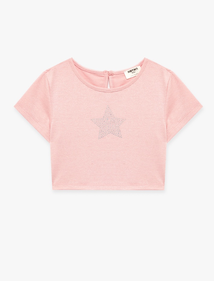 Taş Detaylı Yıldızlı Viskon Karışımlı Kısa Kollu Bisiklet Yaka Crop Bluz Sepete Ekle