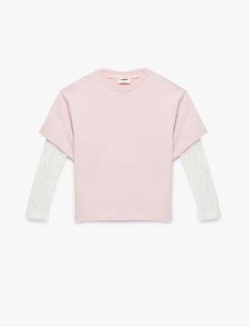 Kız Çocuk Uzun Kollu Bisiklet Yaka Dantel Kol Detaylı Bluz
