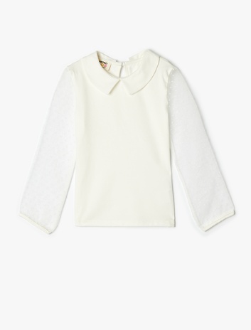 Kız Çocuk Bluz Balon Kollu Tül Detaylı Dik Yaka