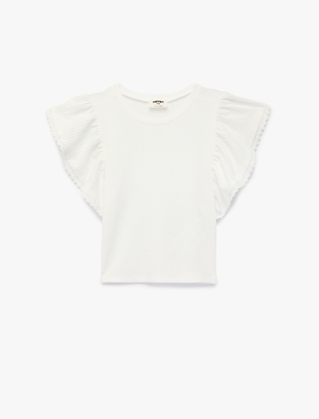 Kız Çocuk Volanlı Kısa Kollu Bisiklet Yaka Bluz