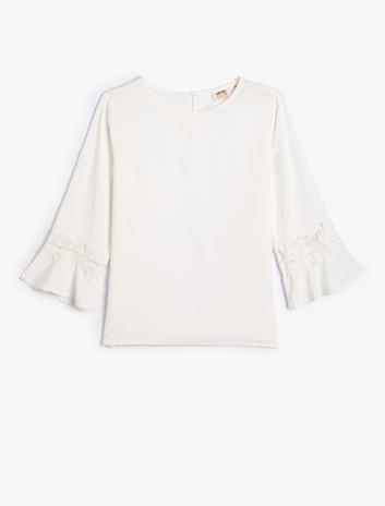 Bluz Uzun Çan Kollu Dantel Detaylı Yuvarlak Yaka Arkası Düğmeli Sepete Ekle