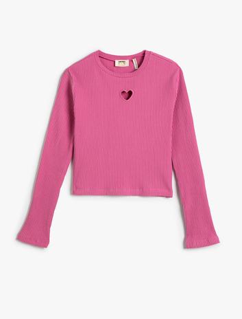 Kız Çocuk Bluz Uzun Kollu Yuvarlak Yaka Pencere Detaylı Kaşkorse