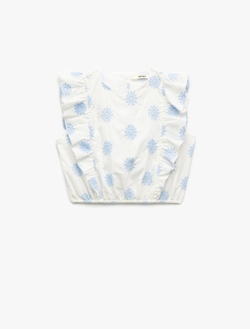 Pamuklu Fırfır Detaylı Brodeli Askılı Crop Bluz Sepete Ekle