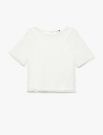 Astarlı Kısa Kollu Bisiklet Yaka Tül Crop Bluz Sepete Ekle
