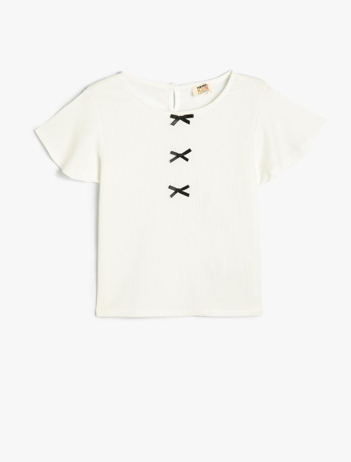 Kız Çocuk Fiyonk Detaylı Kısa Kollu Bisiklet Yaka Bluz