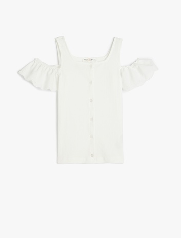 Kız Çocuk Bluz Askılı Düşük Omuzlu Dokulu