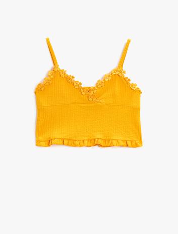 Kız Çocuk Crop Bluz Askılı Gipe Detaylı Fırfırlı