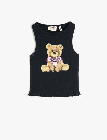 Kız Çocuk Atlet Crop Kolsuz Ayıcık Baskılı Dar Kalıp