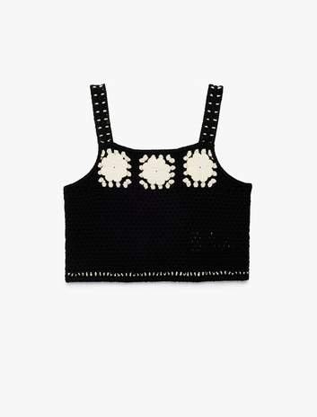 Boncuk Detaylı Kroşe Crop Askılı Bluz Sepete Ekle