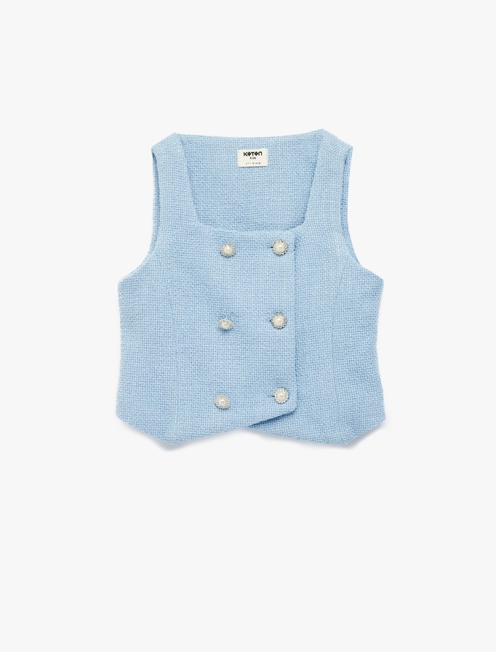Kız Çocuk Kruvaze Yaka Kolsuz İnci Düğmeli Tüvit Yelek