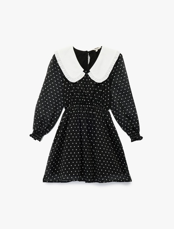 Bebe Yaka Uzun Kollu A Kesim Puantiyeli Elbise Sepete Ekle