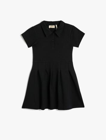 Kız Çocuk Polo Yaka Elbise Kısa Kollu Pamuklu Düğme Detaylı