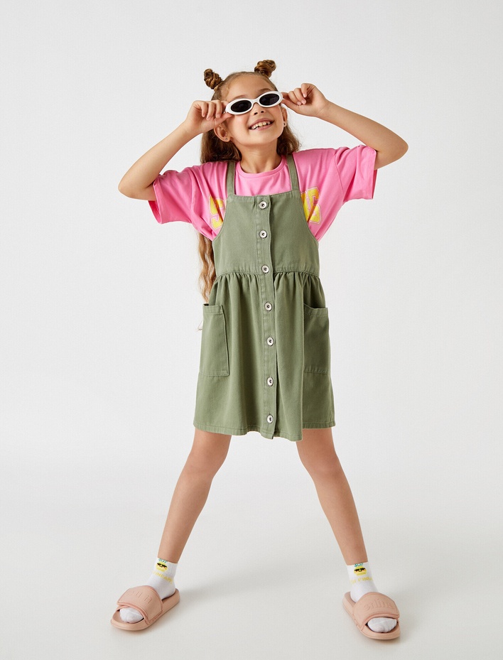 Düğmeli Elbise Pamuklu Askılı Cepli Sepete Ekle